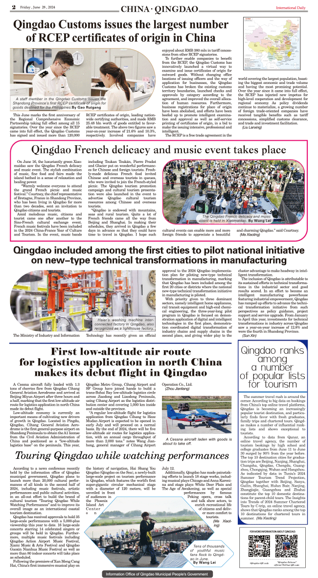 6/28-International Daily News CHINA.QINGDAO 发布日期:2024/6/26 来源:International Daily 打印