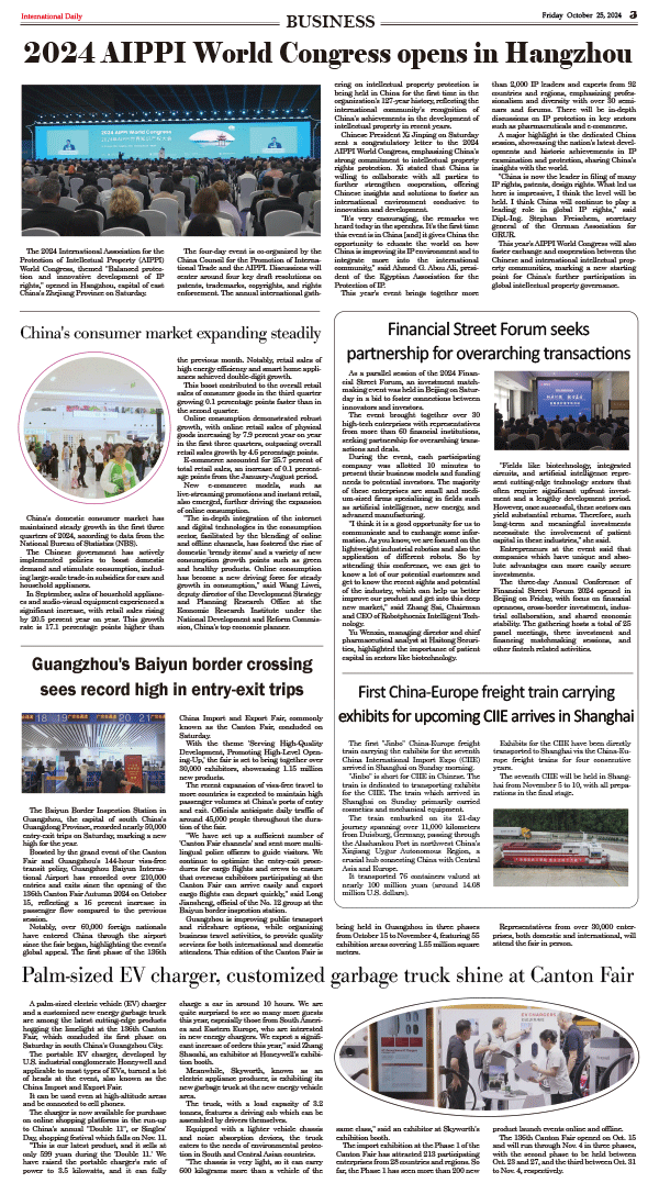 10/25-International Daily News-BUSINESS 发布日期:2024/10/26 来源: 打印