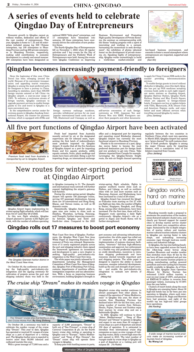 11/8-International Daily News-CHINA.QINGDAO 发布日期:2024/11/11 来源:International daily 打印