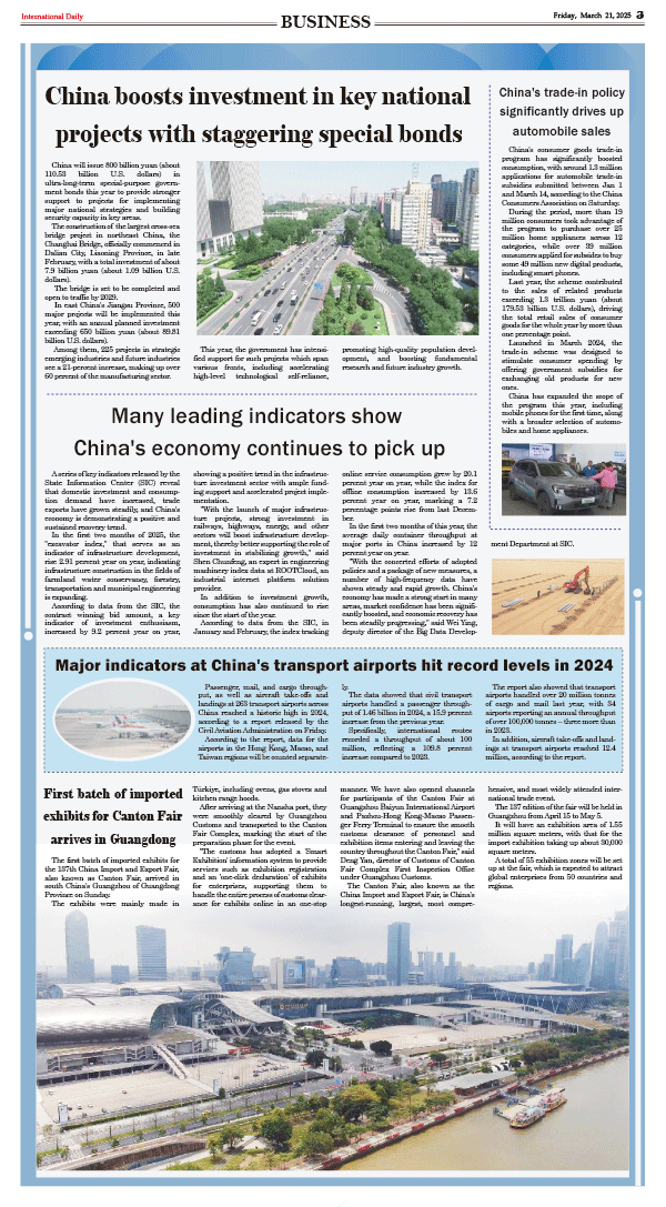 3/21-International Daily News-BUSINESS 发布日期:2025/3/22 来源: 打印