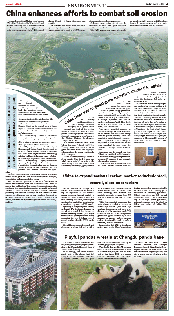 4/4-International Daily News-ENVIRONMENT 发布日期:2025/4/3 来源: 打印