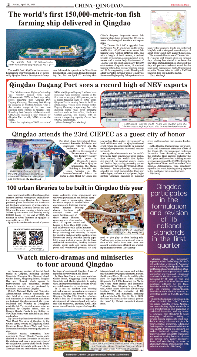 4/25-International Daily News-CHINA.QINGDAO 发布日期:2025/4/25 来源:International daily 打印
