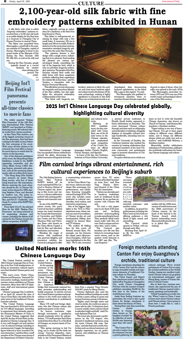 4/25-International Daily News-CULTURE 发布日期:2025/4/25 来源:International Daily 打印