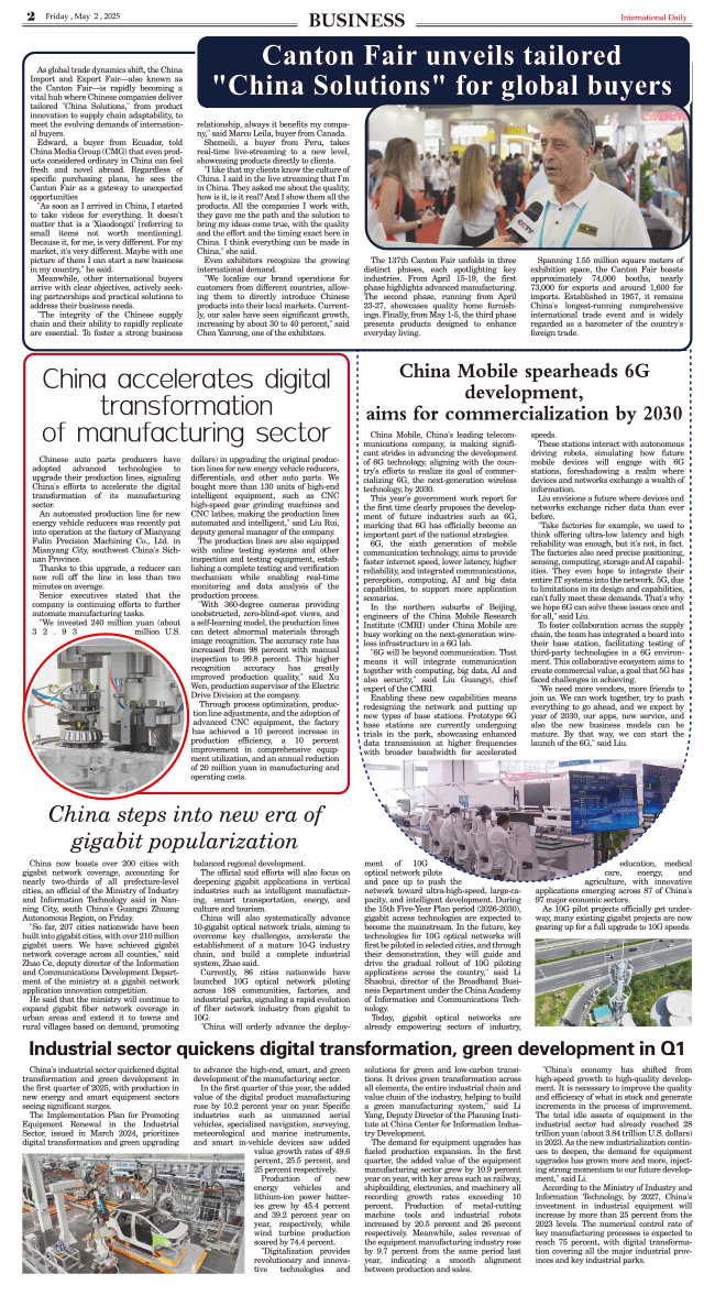 5/2-International Daily News-BUSINESS 发布日期:2025/5/8 来源:International daily 打印