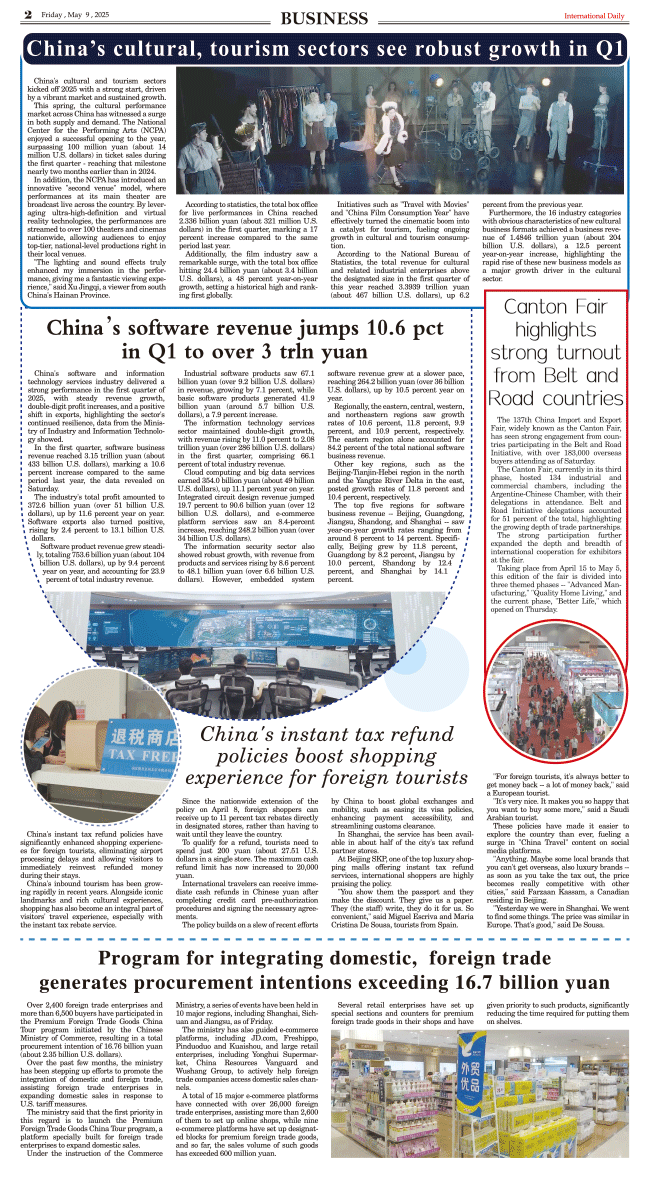 5/9-International Daily News-BUSINESS 发布日期:2025/5/9 来源:International daily 打印
