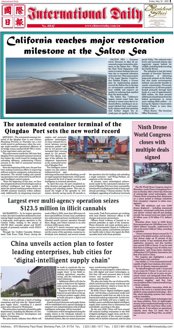 5/30-International Daily News-International Daily 发布日期:2025/5/30 来源:International Daily 打印