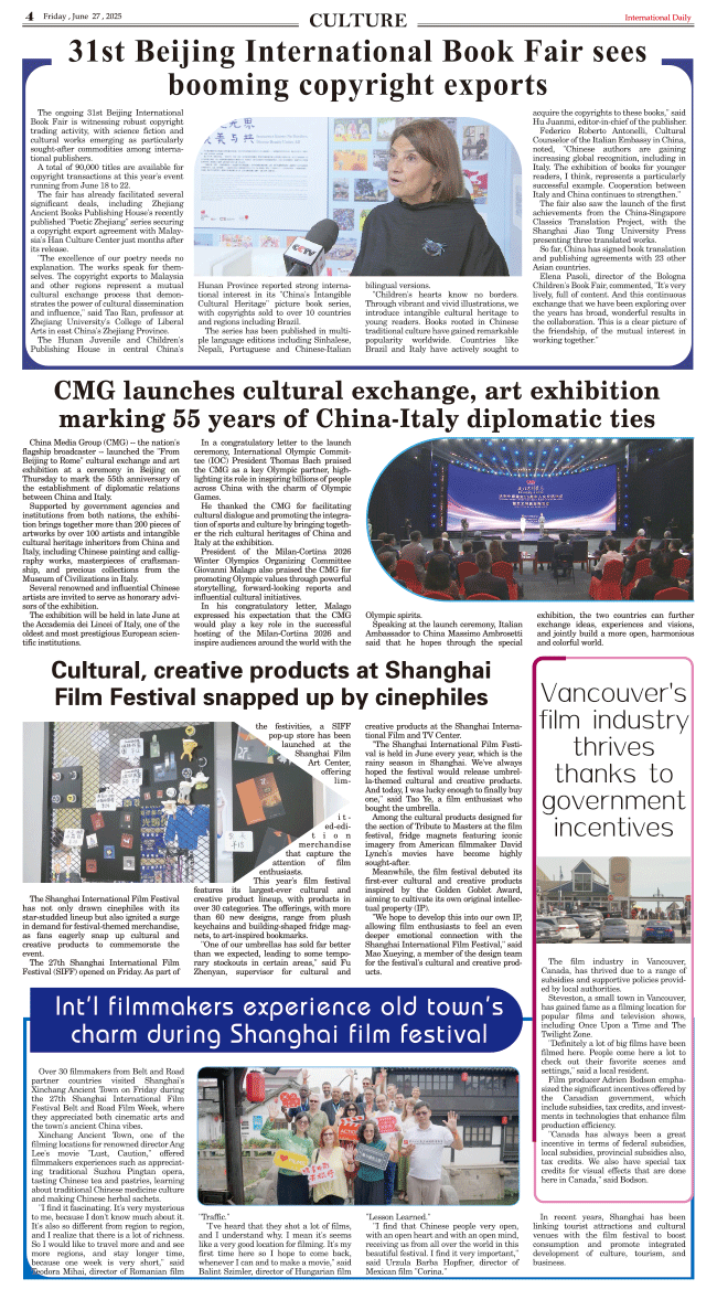 6/27-International Daily News-CULTURE 发布日期:2025/6/27 来源:International daily 打印