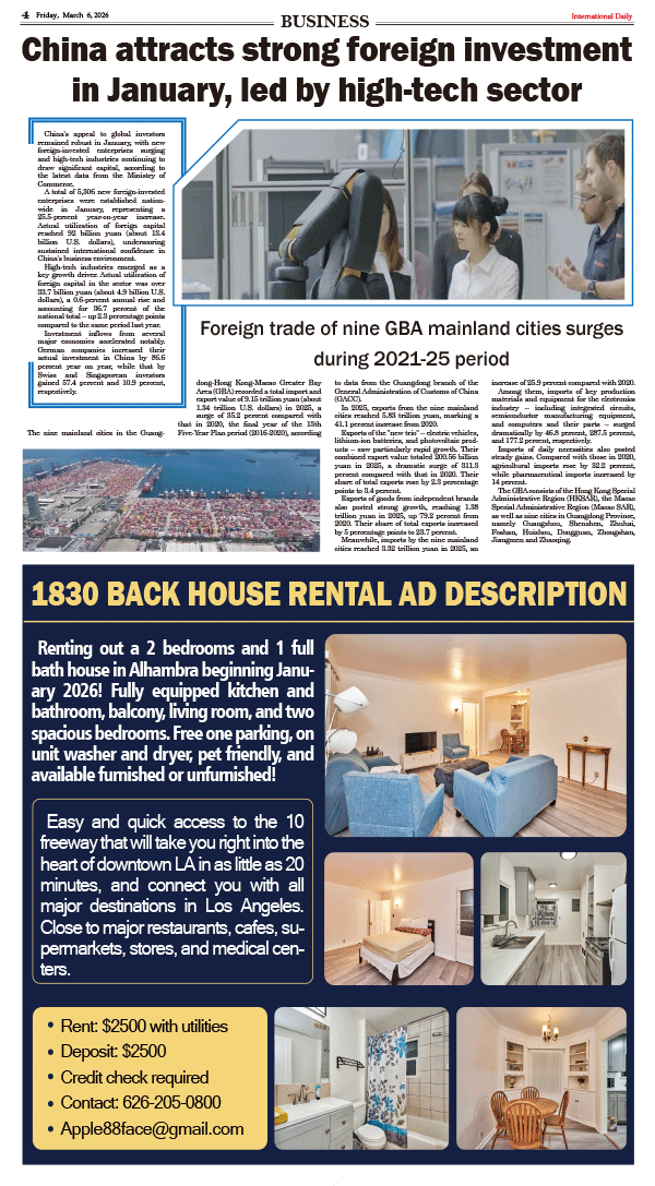 3/6-International Daily News-BUSINESS 发布日期:2026/3/7 来源: 打印