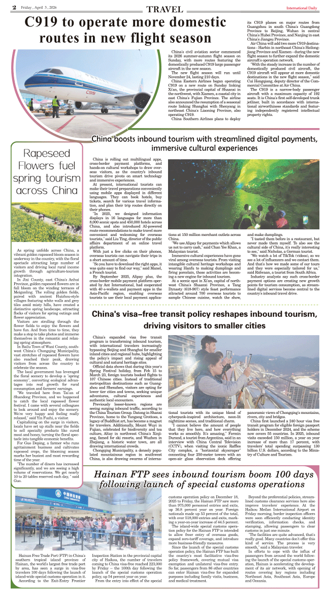 4/3-International Daily News-TRAVEL 发布日期:2026/4/3 来源:International daily 打印