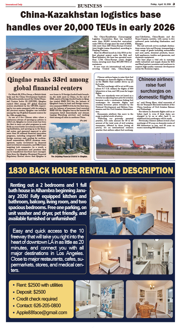 4/10-International Daily News-BUSINESS 发布日期:2026/4/11 来源: 打印