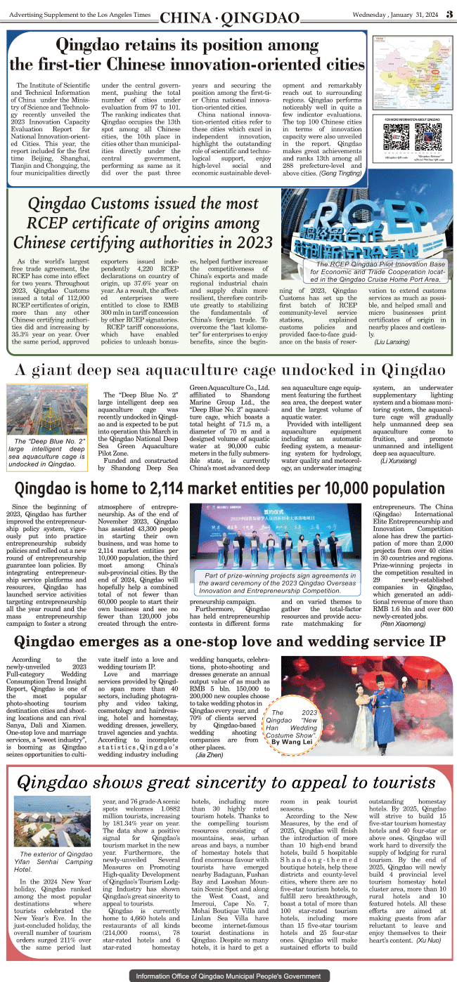 International Daily News supplement to The Los Angeles Times-CHINA .QINGDAO 3 发布日期:2024/1/31 来源:International daily 打印