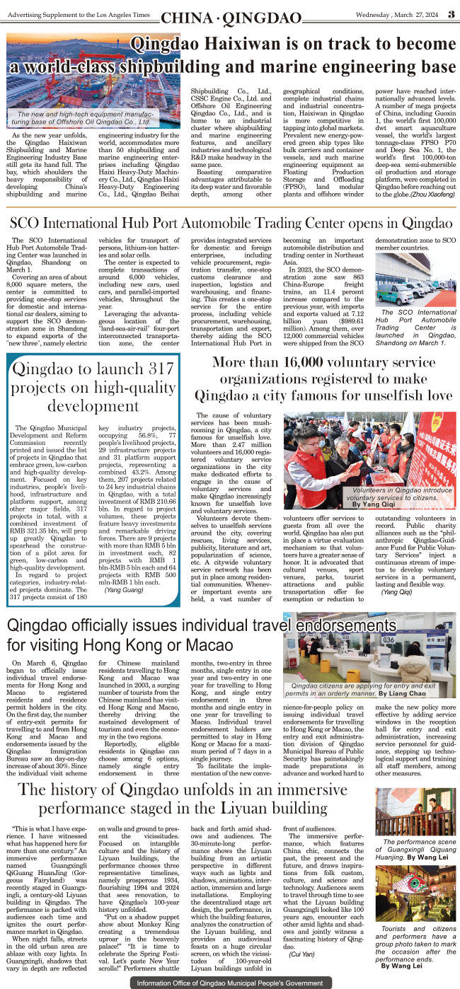 International Daily News supplement to The Los Angeles Times-CHINA .QINGDAO 3 发布日期:2024/3/27 来源:International Daily 打印