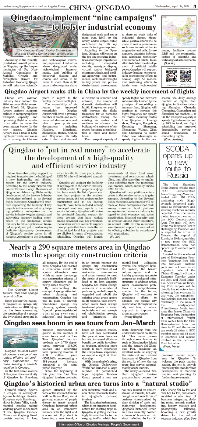 International Daily News supplement to The Los Angeles Times-CHINA .QINGDAO 3 发布日期:2024/4/25 来源:International Daily 打印