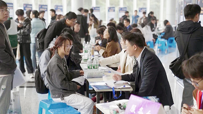 "We held a university-wide job fair, focusing on posts relating to new quality productive forces. We set up dedicated sections for the national defense and military industry, intelligent manufacturing, artificial intelligence, new energy, and new materials. A total of 240 hiring companies were here," said Zhou Shuangxi, director of the Student Affairs Office of Nanjing University of Science and Technology.