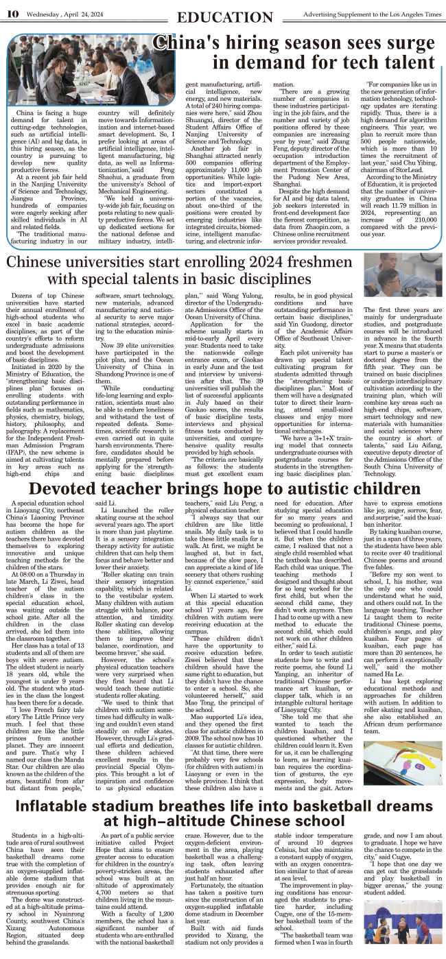 International Daily News supplement to The Los Angeles Times-EDUCATION 发布日期:2024/4/25 来源:International daily 打印