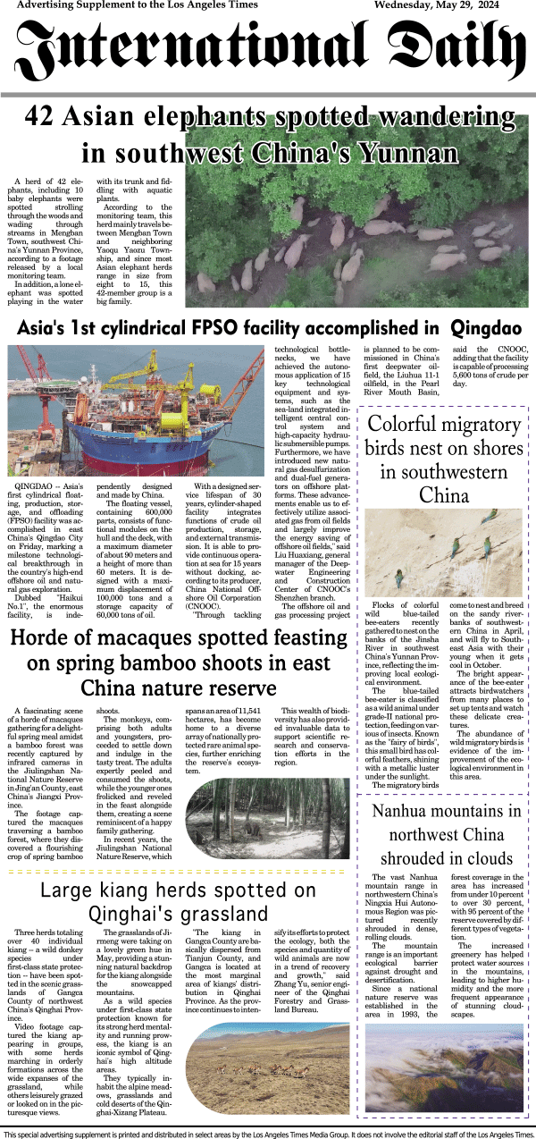 International Daily News supplement to The Los Angeles Times-International Daily 1 发布日期:2024/5/31 来源:International Daily 打印