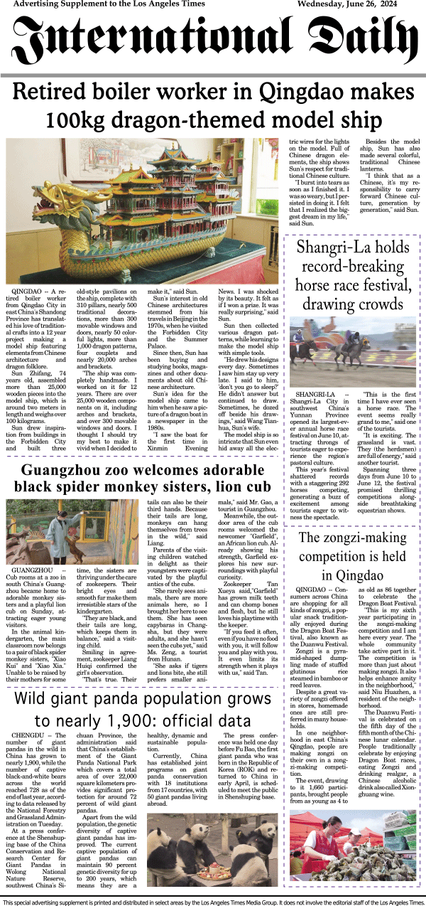 International Daily News supplement to The Los Angeles Times-International Daily 1 发布日期:2024/7/4 来源:International Daily 打印