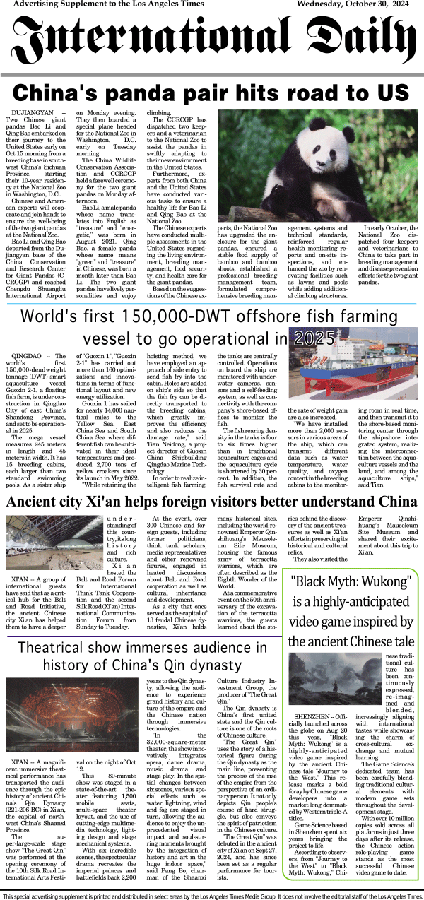 International Daily News supplement to The Los Angeles Times-International Daily 1 发布日期:2024/10/30 来源:International Daily 打印