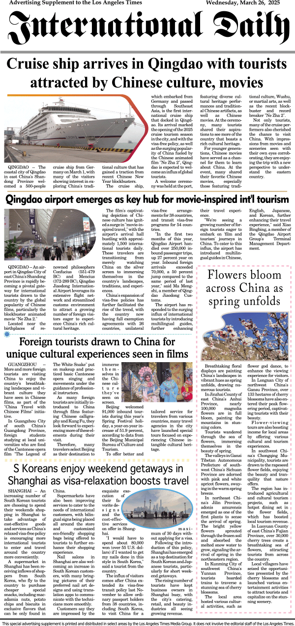 International Daily News supplement to The Los Angeles Times-International Daily 1 发布日期:2025/4/8 来源:International Daily 打印