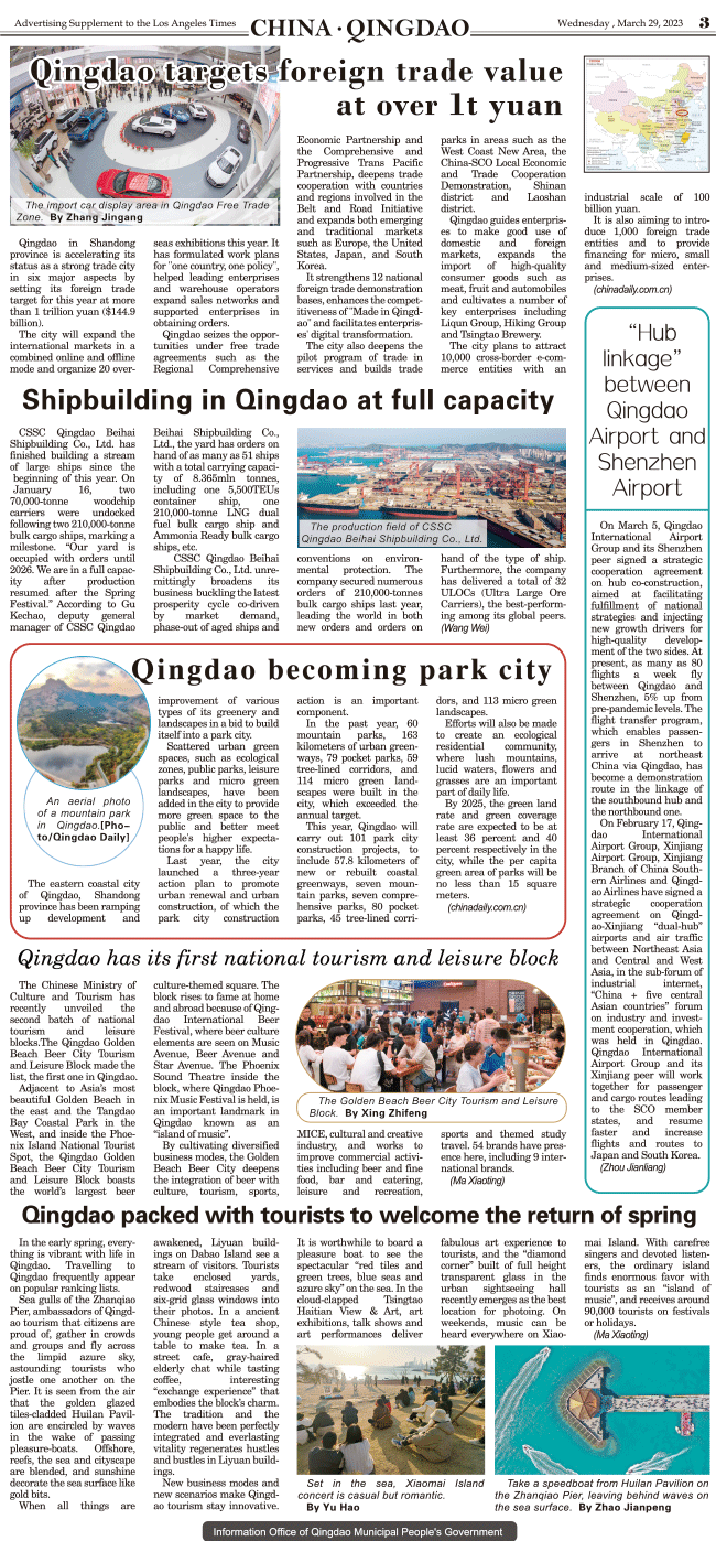International Daily News supplement to The Los Angeles Times-CHINA.QINGDAO 3 发布日期:2023/3/30 来源:International daily 打印