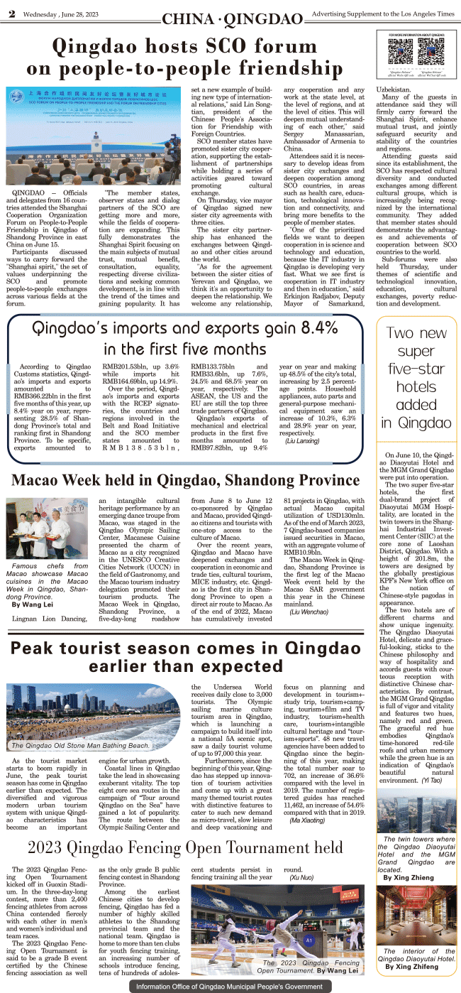 International Daily News supplement to The Los Angeles Times-CHINA.QINGDAO 2 发布日期:2023/6/29 来源:International daily 打印
