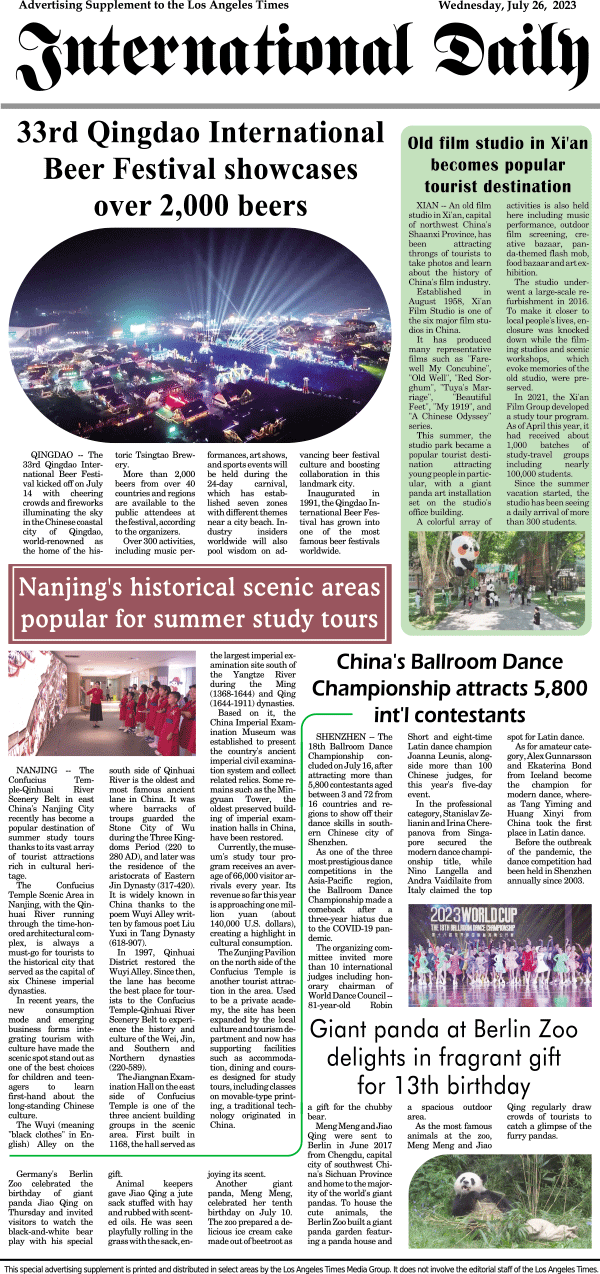 International Daily News supplement to The Los Angeles Times-International Daily 1 发布日期:2023/7/26 来源:International Daily 打印