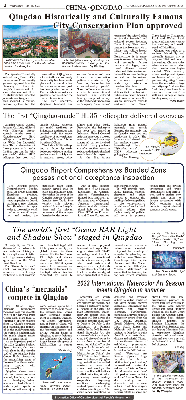 International Daily News supplement to The Los Angeles Times-CHINA.QINGDAO 2 发布日期:2023/7/26 来源:International daily 打印