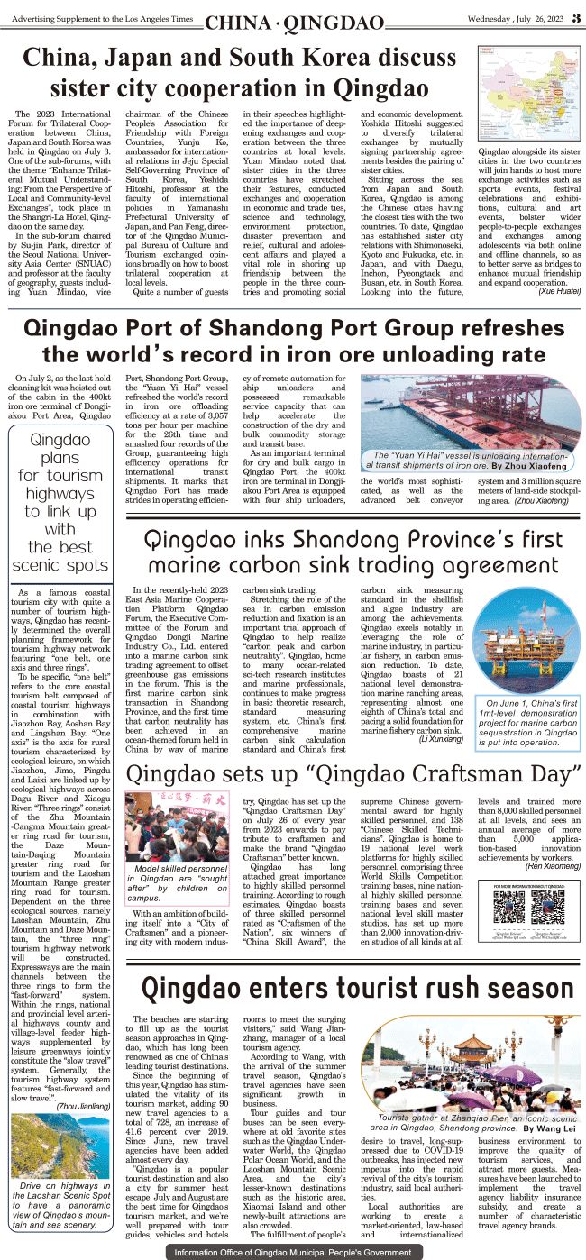 International Daily News supplement to The Los Angeles Times-CHINA.QINGDAO 3 发布日期:2023/7/29 来源:International daily 打印