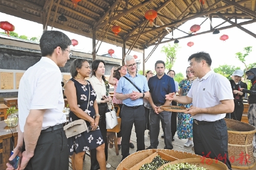 美国塔科马市代表团了解福州茉莉花茶制作工艺。
