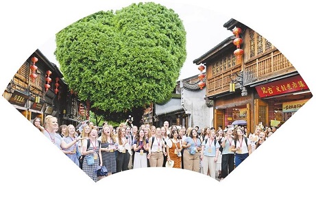 杨百翰大学女子合唱团在福州南后街爱心树前放歌
