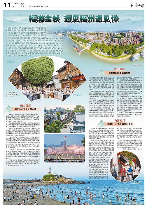 国庆中秋假期前后,“福满金秋 遇见福州遇见你”福州市秋季文旅主题活动将火热开展,以“票根经济”为核心纽带,推出近千场文旅活动、千万元消费券、万份好礼及百项优惠举措,打造“吃住行游购娱”全链条票根联动消费场景,让游客更好感受福州的消费活力与城市魅力。