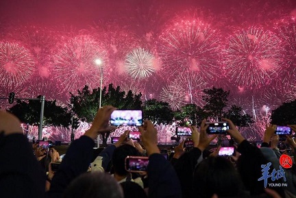 Revelers cheered as countless fireworks burst into the sky, marking the return of the fireworks show after 15 years of absence. The fireworks show represented Shantou's warm welcome, cordial greetings, and well wishes to all.
