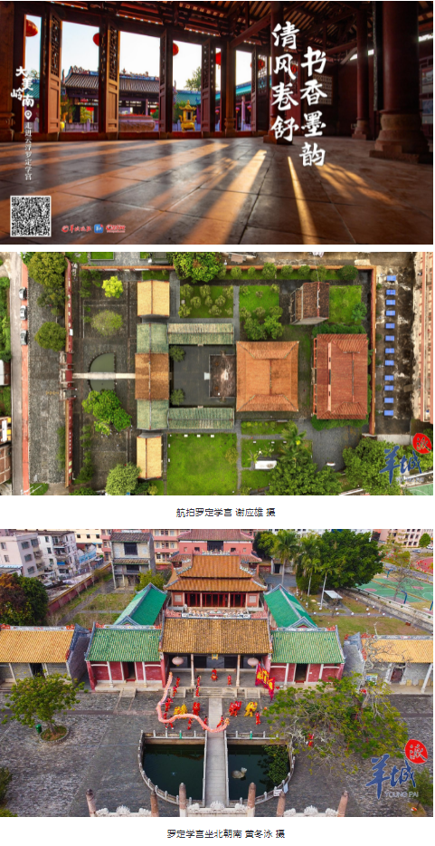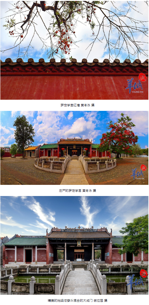 #TheGreatBeautyofGuangdong Built in 1647, the Luoding Academy is a provincially protected cultural relic in Guangdong. In 1938, amid the chaos of war, teachers and students from Sun Yat-sen University fled to Luoding and continued their studies at the academy. Despite the tumult of those years, the sound of reading could be heard echoing through its halls. Today, in front of its gate, two ancient trees stretch over the red walls. One tree boasts lush, verdant branches and leaves, while the other twists and turns with tangled, gnarled limbs.