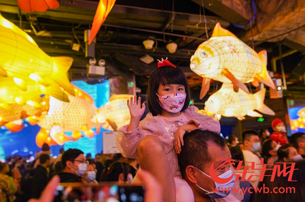The exquisite fish lanterns attracted many citizens and tourists, many of whom wore Tang suits(Tang-style costumes)and Hanfu(Han-style costumes)to take pictures and experience the immersive "Tang Palace Night Banquet" to celebrate the Lantern Festival together.
