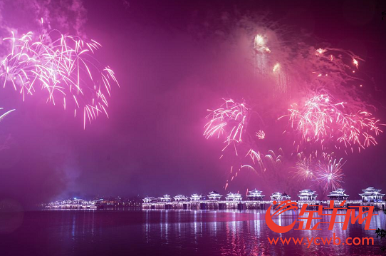 During the fireworks show, nearly 50,000 fireworks rose in the waters of the Han River. The simplicity and modernity of Chaozhou City blended, and the river was full of splendor, bringing good wishes for the New Year.