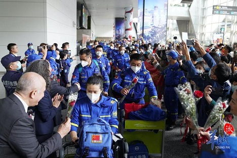 #TheGreatBeautyofGuangdong Welcome the Warriors back home! At noon on Feb. 19, China Blue Sky Rescue Team arrived at Baiyun International Airport on a flight from Istanbul to Guangzhou after completing its rescue mission in Turkey.