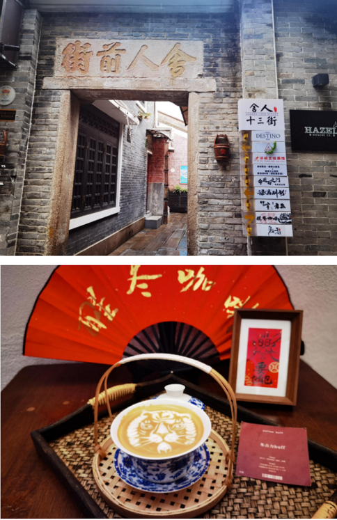 佛山禅城区燎原路一带藏有一处历史文化街区“任围”。近年来,老街旧巷面貌焕新,吸引了一批创业青年入驻,开起了花植美学工作室、咖啡馆、法式餐厅、庭院茶室等特色店铺。同时,这里依然可见青砖镬耳、檐口雕花的古民居群,居住着大量老街坊,生活气息浓厚,市井烟火里满是岭南韵味。