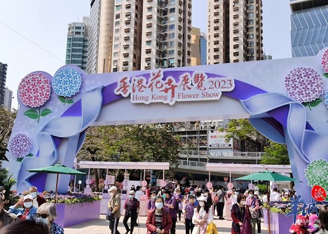 3月10日,香港花卉展览2023在铜锣湾维多利亚公园开幕。花展共展出约40万株花卉,包括约4万株绣球花,让市民游客在春天里饱赏绚丽多姿的花花世界。