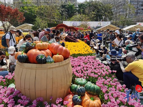 花展画展现场,市民们徜徉花海之间,长枪短炮,自拍留影,拍花拍美景,展览将持续至3月19日。