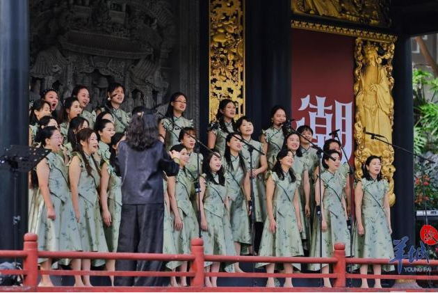 在荔枝湾旁的粤剧艺术博物馆,粤语歌曲与合唱旋律交织出一段跨越时空的情感共鸣。11月24日,“粤潮文化周”系列活动之“‘歌咏粤声’骑楼下的粤语民谣”分别在粤剧艺术博物馆广福台和广州珠江公园西区草坪举行,为市民游客带来一场充满岭南韵味的音乐盛宴。