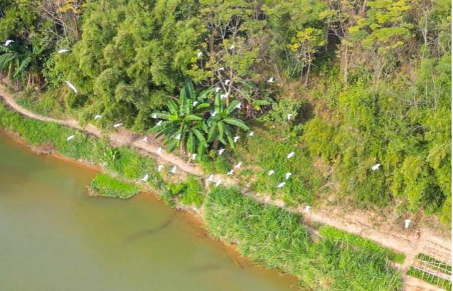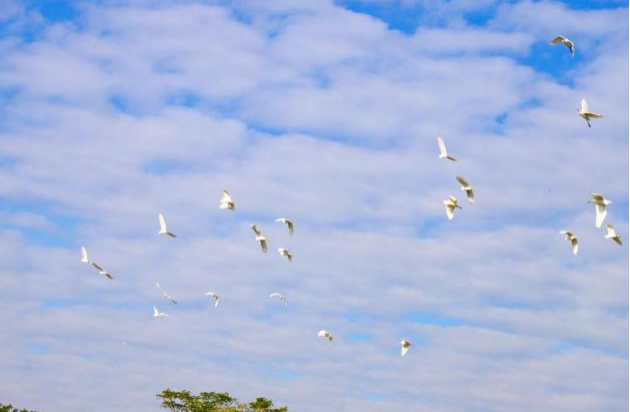 The bird population in Xinyi has increased, with flocks of egrets flying together