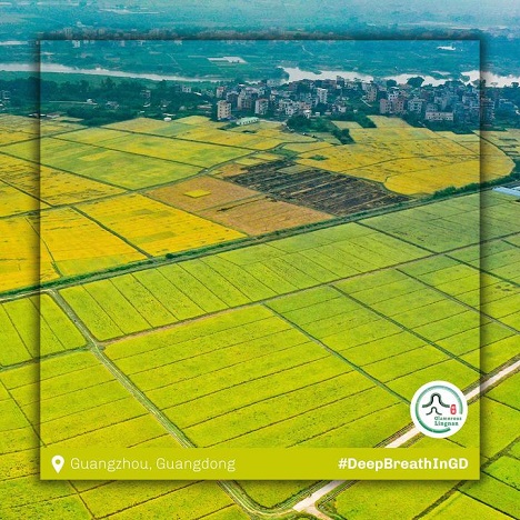 #DeepBreathInGD Wheat fields have covered the local gentle slope, and trams run along the green rail. By clicking on the green pictures, let's smell the fragrance of wheat and see the fruits of the "Ecological Construction of Green and Beautiful Guangdong" program.