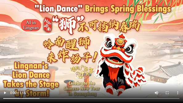 AI in Lingnan | "Lion Dance" Brings Spring Blessings, Lingnan's Lion Dance Takes the Stage by Storm!