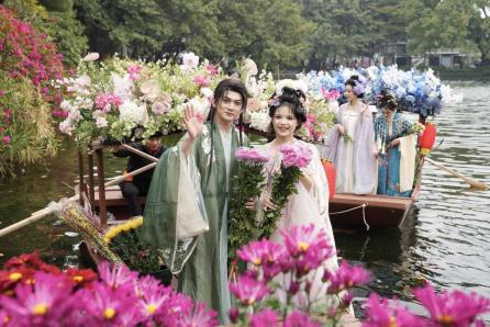 The waterborne flower market made a grand debut at Liwan Lake Park