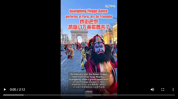 Art and Culture | On February 2nd, the Ximen Yingge Team from Chao Yang, Shantou, Guangdong, made a grand appearance on the Champs-élysées in Paris, dazzling the crowd with their powerful dance moves!Such events not only strengthenfriendships between different countries and ethnicities but also showcase the charm and vitality of traditional Chinese culture on the international stage, elevating China's global image and influence.