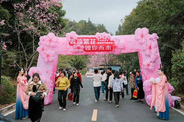 阳春三月,春暖花开。位于揭阳揭西县的大洋生态旅游度假区成片的樱花竞相绽放,如云似霞,粉嫩的花朵挂满枝头,微风拂过,犹如粉色雪花的花瓣飘落在环湖栈道,美不胜收。
