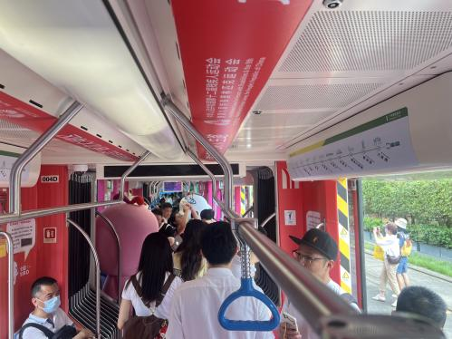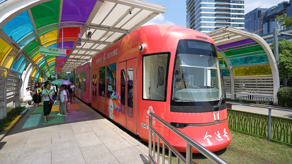 4月23日,在距离第十五届全国运动会开幕倒计时200天之际,“全运号”主题列车在海珠有轨电车正式上线。列车外观颜色为红、紫、绿、蓝,并融入港珠澳大桥、广州塔、香港中银大厦、澳门金莲花等地标以及城市市花、运动人物动感剪影,形成了独特的视觉符号,充分展现湾区文化融合和体育精神的蓬勃力量。