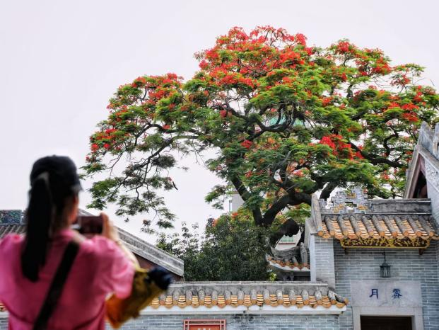 去年5月,位于广州市白云区龙归街南村村周氏大宗祠旁的一棵凤凰木火爆全网,如今又是凤凰花开时。预计再过一周时间,该凤凰木便可花开满枝头。本月,该村的荷花也将进入盛花期,届时,游客来到南村便可同时欣赏凤凰花和荷花。