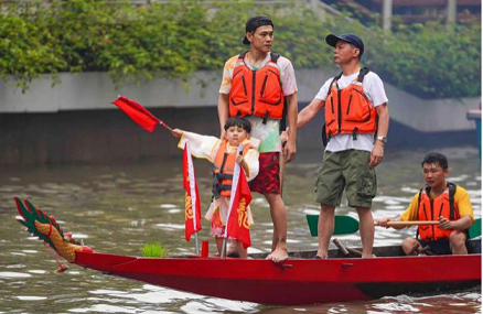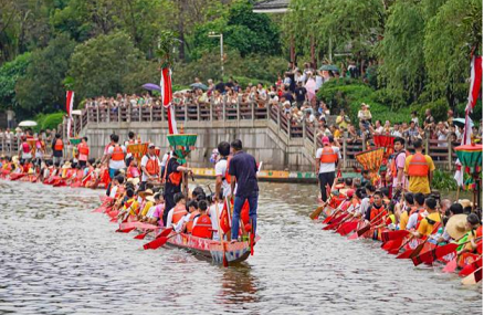 “龙船采青”是广东地区端午节前的标志性仪式,5月18日,午后的一场“龙舟水”没有浇灭龙舟热,猎德涌边人山人海,猎德村老青少齐上阵,不惧雨水湿衫,正式开启全民龙舟季欢乐时刻。