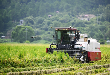 岭南七月,骄阳似火。河源市东源县柳城镇下坝村的田野间,金黄的稻穗层层翻涌,汇成一片丰收的海洋。多台无人驾驶收割机正沿着预设的“无形轨道”,在烈日下精准、高效地吞吐着稻谷。农户无需下田,丰收已在“云端”掌控之中。中国工程院院士、岭南现代农业广东省实验室教授罗锡文的目光,正追随着在稻浪中自主穿行的多台“铁牛”。